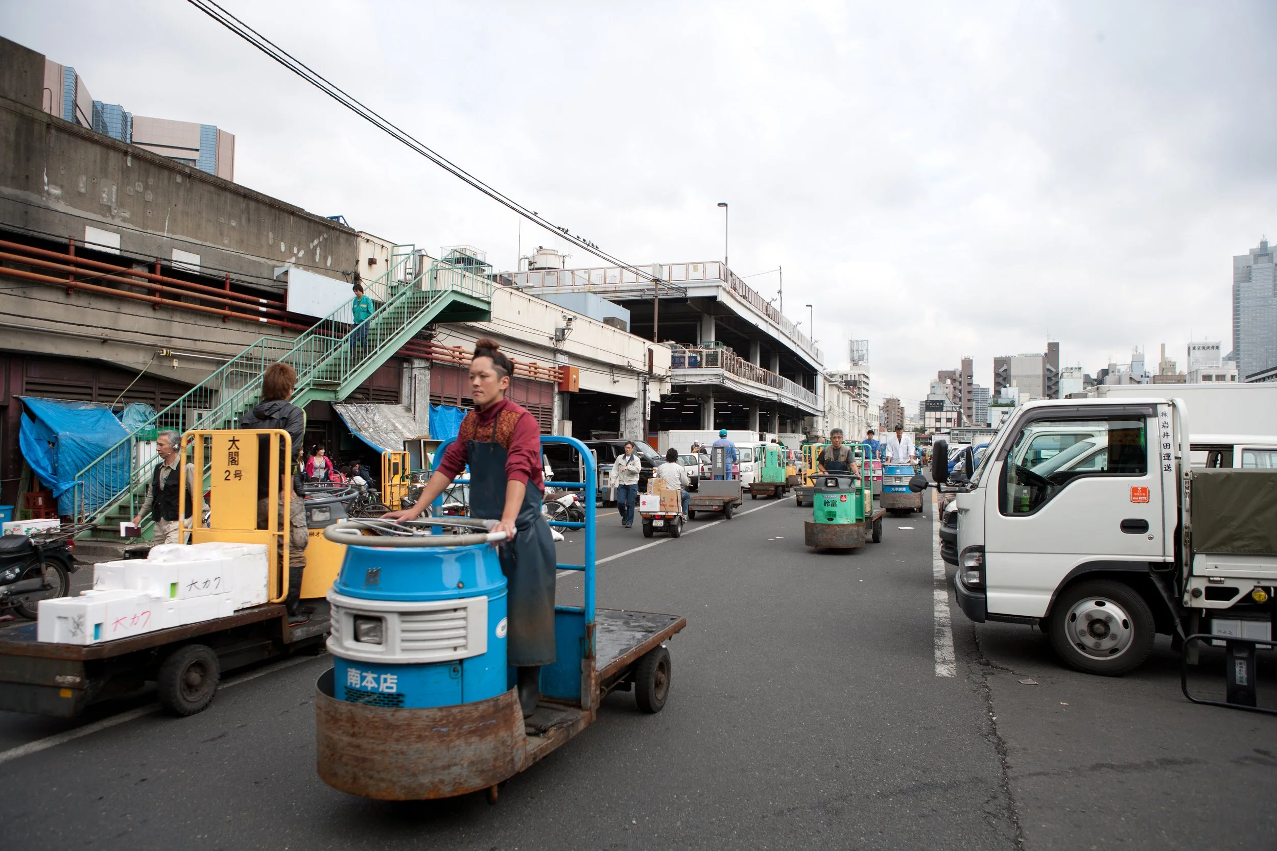 When I visited Tsukiji in 2010, before its closure and relocation, I was struck by how accessible this world still was — how one could stand within it, rather than outside it. There was no barrier between observer and activity. I felt fortunate to witness, at close range, the whirl and rush of humanity, its life and death unfolding continuously within the same space.